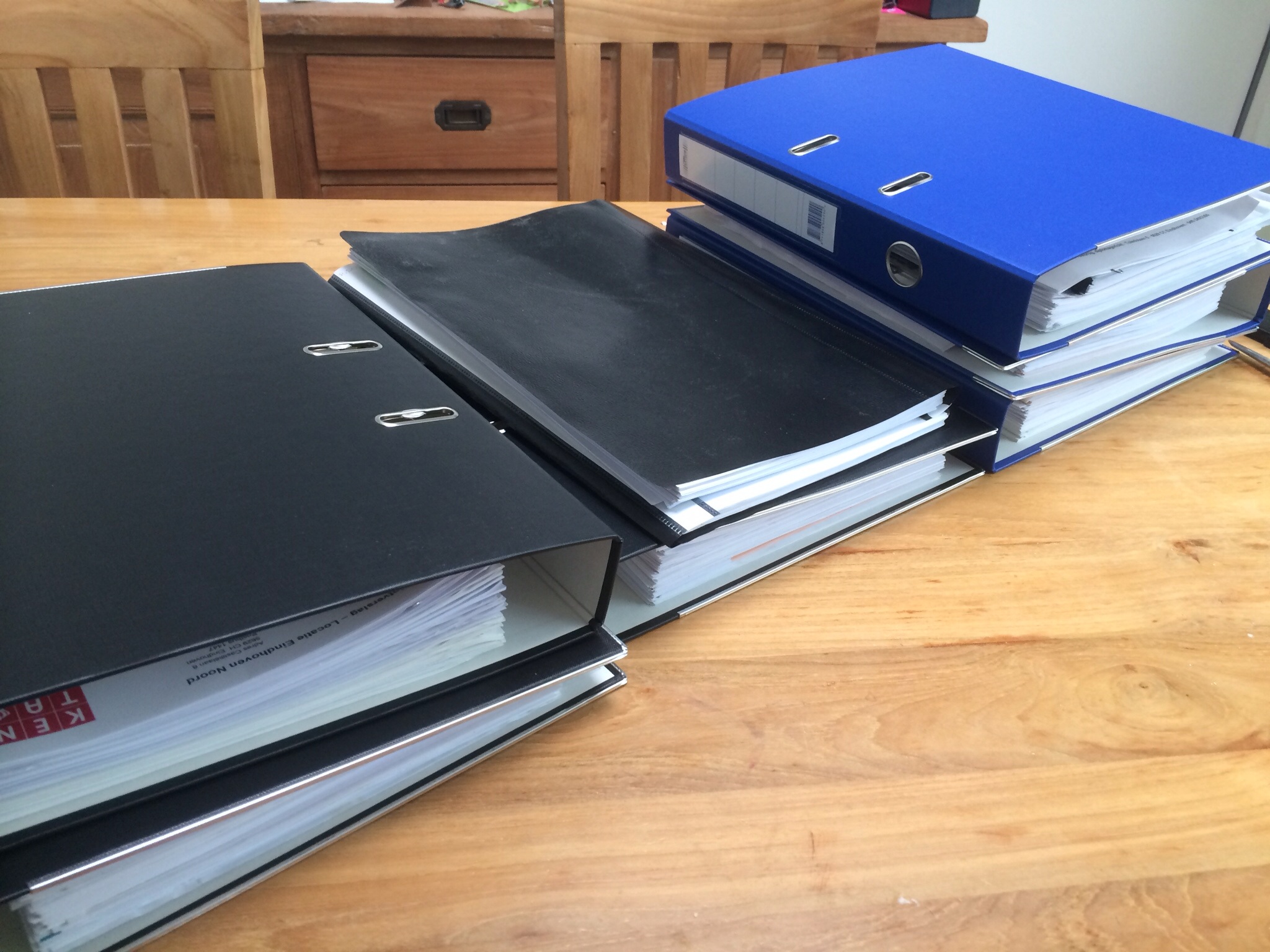 De verzameling papieren van het zorgkantoor, de SVB en handelingsplannen van de begeleiding, zorgovereenkomsten en urenstaten van begeleiders zitten hier dus niet bij. Voor het visuele plaatje, kijk nog maar een keer naar de blauwe mappen….